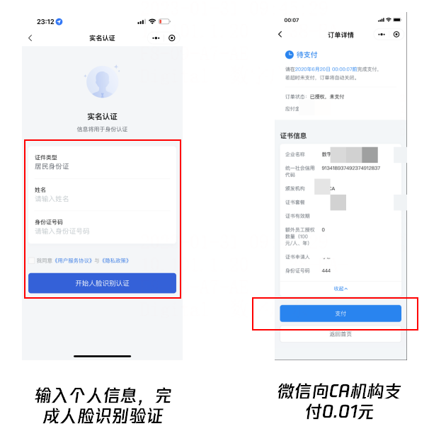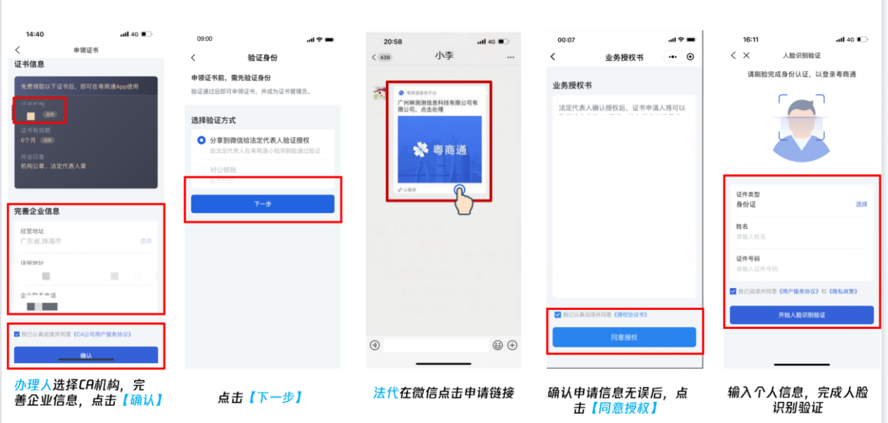 选择CA机构,完善企业信息,完成人脸识别验证。