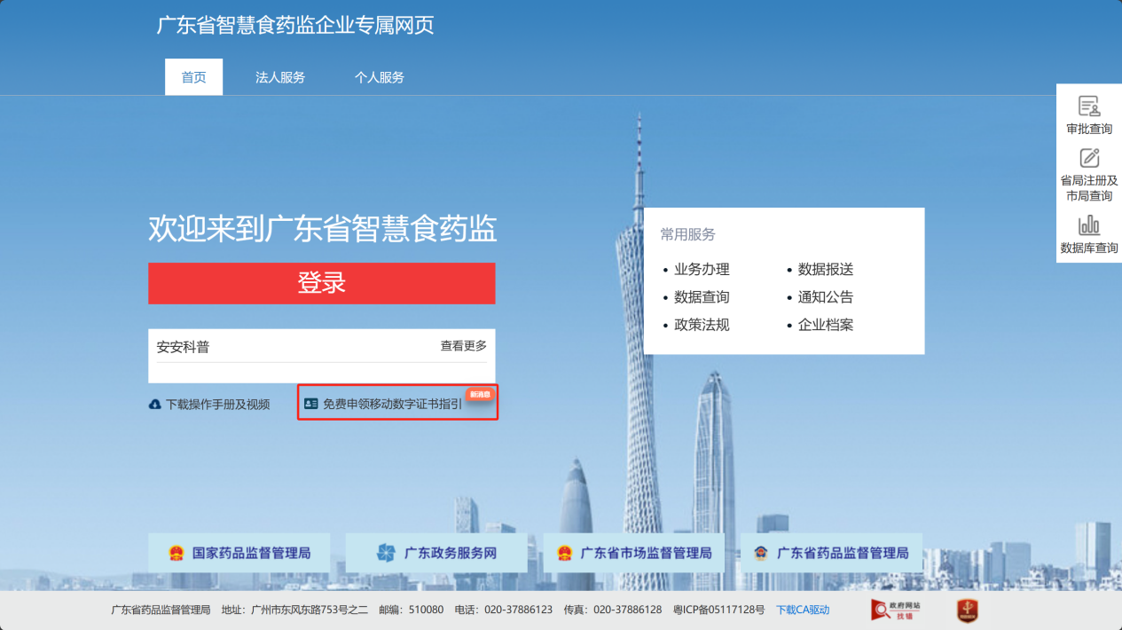 广东省药品、医疗器械和化妆品等药监行业企业都具备申领数字证书的资格。符合申领资格的企业通过广东省移动政务APP粤商通或粤企签公众号完成身份认证后3-5分钟内可完成证书申领。