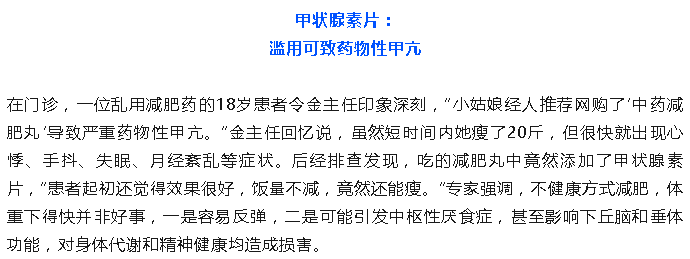 滥用危害:干扰正常代谢,引发甲亢、心律失常等。